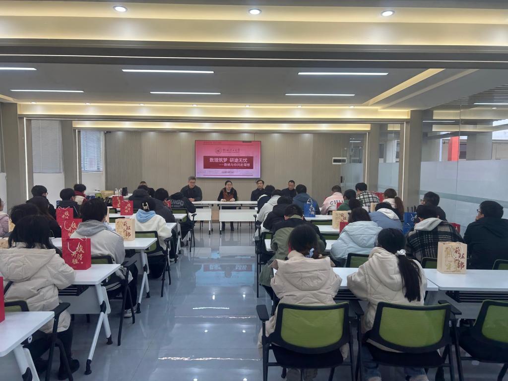12月15日,beat365手机版官网入口“数理筑梦 研途无忧”考研学子慰问活动在雁山校区10B栋负一楼考研规划指导中心温情举行。学院党政领导班子、各专业教研室主任,以及全体辅导员莅临现场,为正处于紧张备考关键阶段的2026届考研学子加油鼓劲、纾解压力。活动由党委副书记钟立军主持。