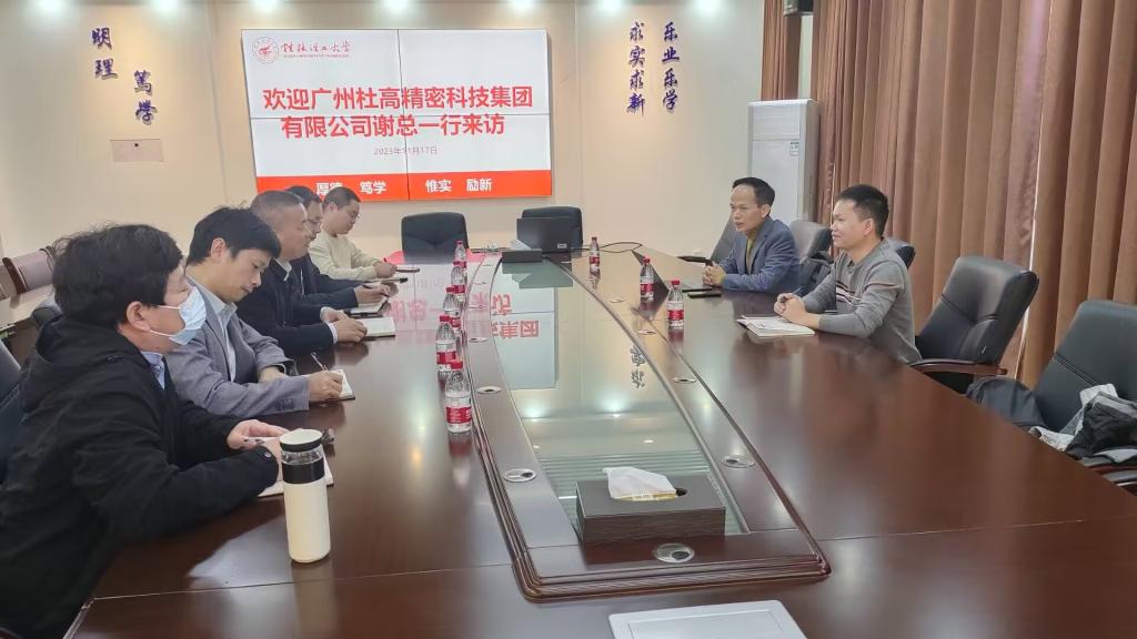 广州杜高精密科技集团有限公司谢汝周总经理和研发部负责人罗克发(2016届应物专业校友)来我院交流洽谈校企合作事宜