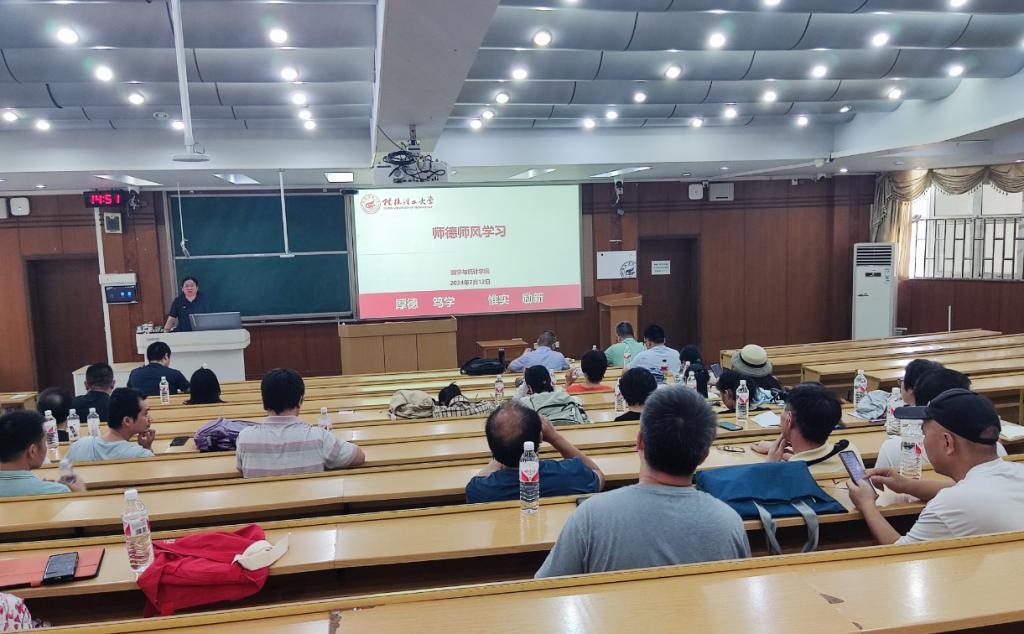 为进一步加强我院师德师风建设工作,树立教师良好形象,营造风清气正的教育生态环境,提醒我院教职工严守师德底线,自觉遵守新时代教师职业行为准则,坚决杜绝师德失范行为发生。7月12日下午,我院在屏风校区9401召开师德师风教育活动,学院全体教职工参加了会议,会议由学院党委书记江玲主持。