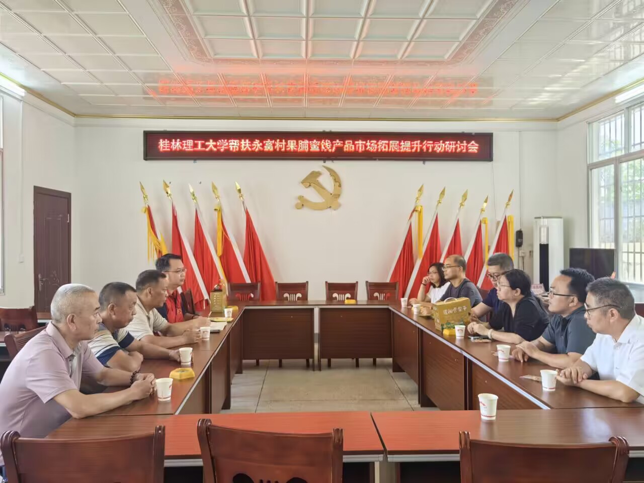 在乡村振兴帮扶工作研讨会上,老师们运用专业知识和永福村委人员就农产品生产、加工、市场营销等进行了深入的交流和探讨,并提出了具体的帮扶方案和措施。