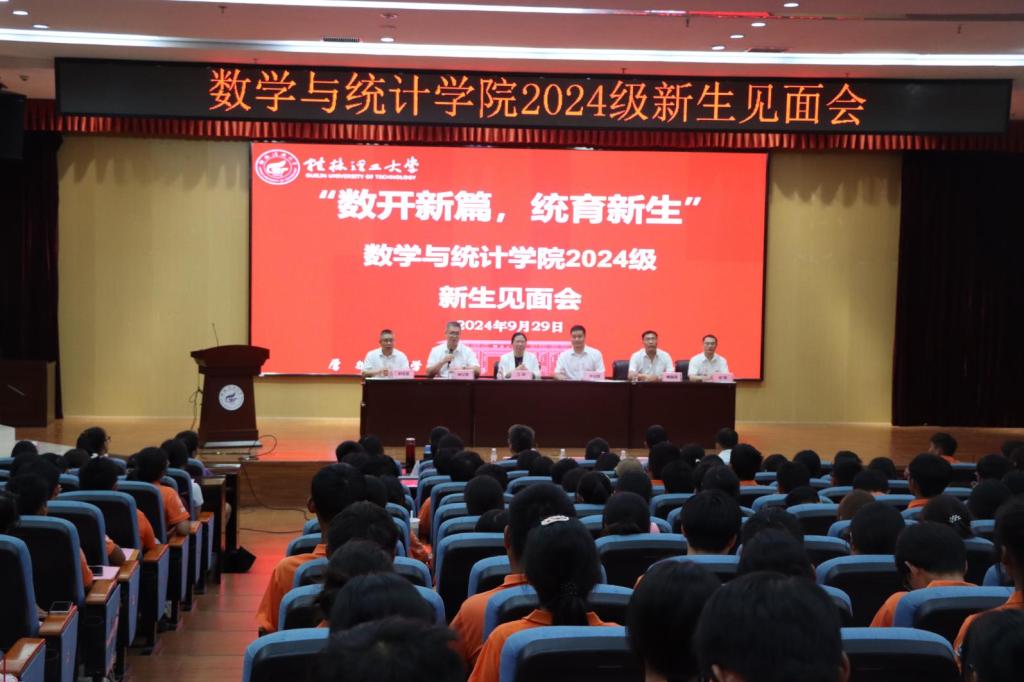 金秋九月,丹桂飘香,为推动学院2024级新生融入数统大家庭。9月29日,beat365手机版官网入口召开“数开新篇,统育新生”——2024级新生见面会。学院党委书记江铃、院长蒋远营、学院党委副书记钟立军、副院长封全喜、唐国强、院长助理徐峰出席本次会议,学院各专业教研室主任、新生班主任、学院辅导员、2024级研究生及2024级本科生参加本次见面会。会议由学院党委副书记钟立军主持。