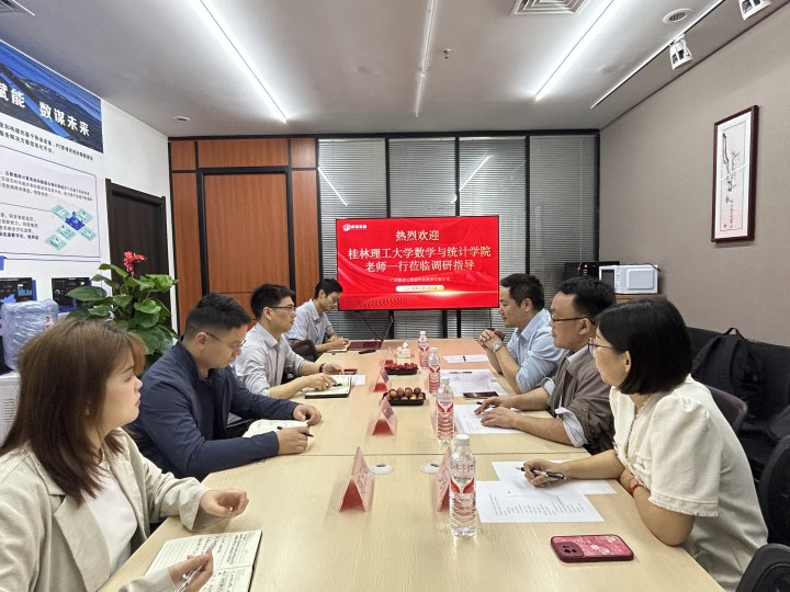 为深化产教融合,推动统计学专业人才培养与行业需求精准对接,3月28日,桂林理工大学beat365手机版官网入口院长蒋远营教授率队前往广西数道云数据科技集团有限公司(以下简称“数道集团”)开展专题调研并看望了在该公司工作的校友,学院副院长王彬、应用统计专业教研室主任丁少玲及院长助理徐锋共同参与。