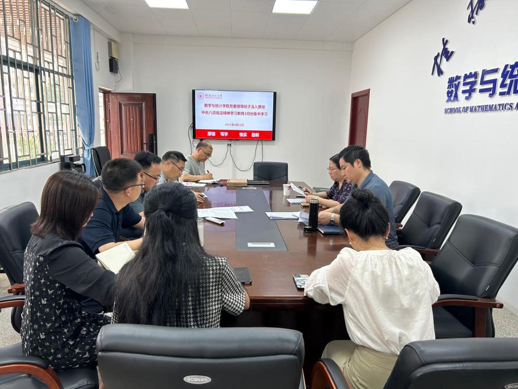 4月22日,学院党委领导班子深入贯彻中央八项规定精神学习教育4月份集中学习在雁山校区08203会议室举行。会议由学院党委书记江玲主持。学院领导班子、党支部书记参加会议。
