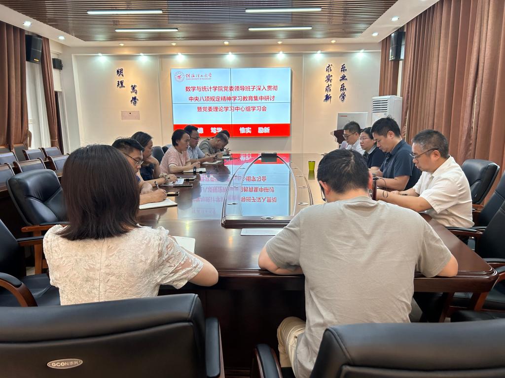 6月18日,学在雁山校区08201会议室召开党委领导班子深入贯彻中央八项规定精神学习教育集中研讨暨党委理论学习中心组(扩大)学习会党委书记江玲领学并讲话。学院领导班子成员参加会议。