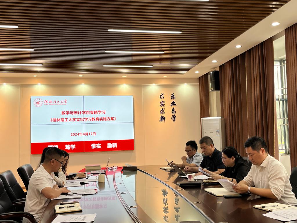 会上,学院党委主要负责人传达了习近平总书记关于党纪学习教育的重要讲话和重要指示精神,及学校党纪学习教育工作会议有关部署要求,详细解读了《桂林理工大学党纪学习教育实施方案》,并对学院党委开展党纪学习教育进行了工作部署。她强调,各师生党支部要严格落实学校实施方案要求,准确把握党纪学习教育目标要求,原原本本学、全面系统学、逐条逐句学,全院各党支部要提高政治站位,深刻认识党纪学习教育的重要意义,助推党纪入脑入心。