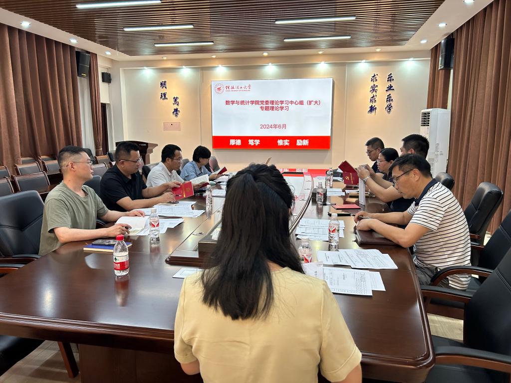 6月5日下午,我院在雁山校区08201召开党委理论学习中心组(扩大)集中理论学习会,专题学习习近平总书记关于党纪学习教育的重要讲话精神指示、习近平总书记对学校思政课建设作出的重要指示精神。会议由学院党委书记江玲主讲,学院领导班子全体成员参加会议。