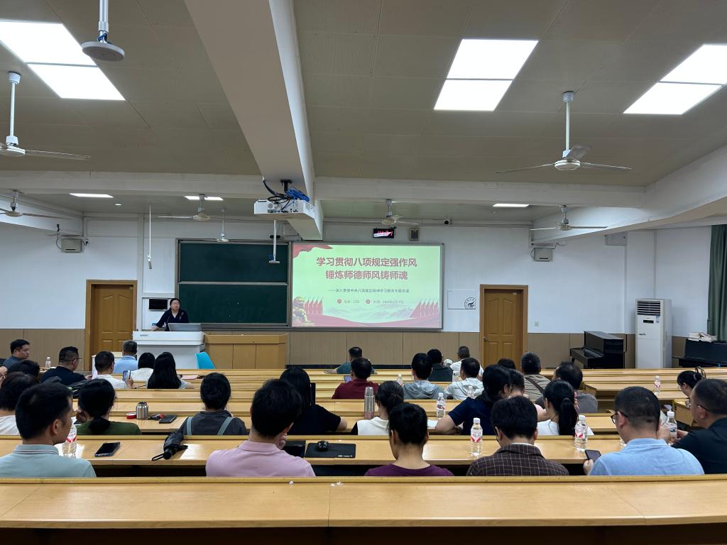 6月17日,学院在屏风校区09101组织开展“深入贯彻中央八项规定精神学习教育”专题党课。学院党委书记江玲主讲,全院教职工参与学习。