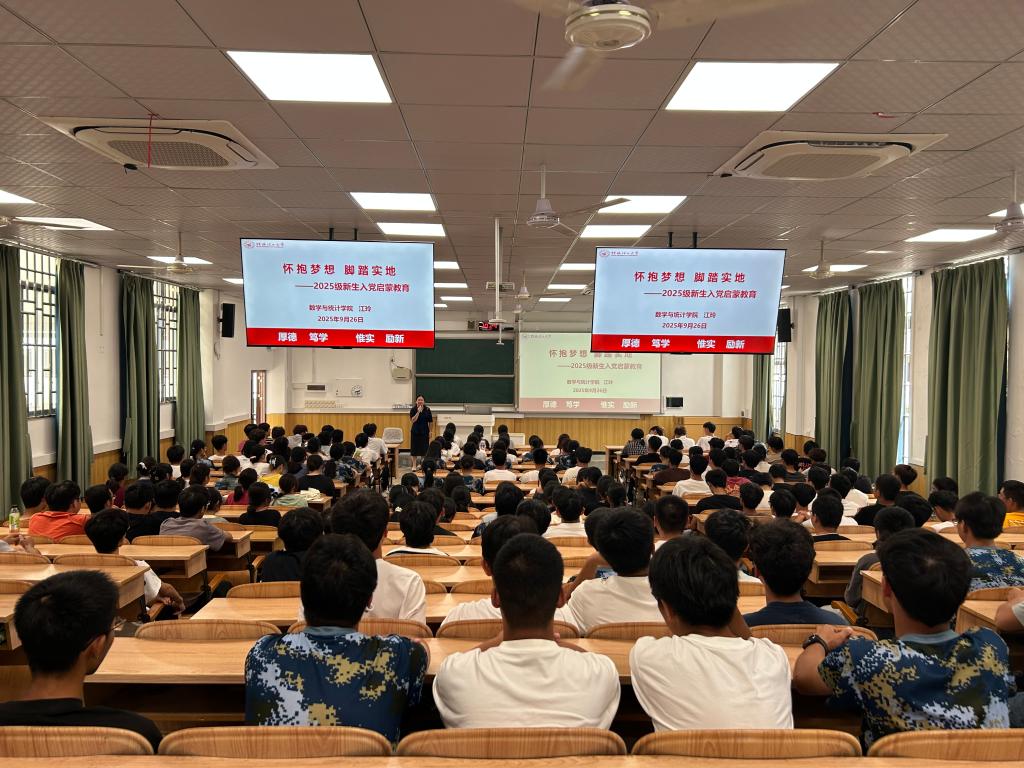 为切实加强2025级新生理想信念教育,进一步加深新生对党的认识,切实抓好新生入党启蒙教育关键期,引导新生积极向党组织靠拢。9月26日,beat365手机版官网入口在雁山校区06408举办了2025级新生入党启蒙教育。学院党委书记江玲主讲,以“怀抱梦想,脚踏实地”为主题,为全院新生带来了一场富有思想性和启发性的入党启蒙教育。