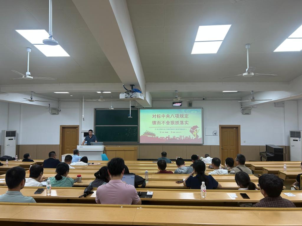 6月17日,beat365手机版官网入口在屏风校区09101组织开展“深入贯彻中央八项规定精神学习教育”专题党课。本次党课由学院党委副书记、院长蒋远营主讲,全院教职工到场学习。党课紧密结合高校教育工作实际,引导全体教师党员将中央八项规定精神内化于心、外化于行,以过硬作风投身立德树人事业。