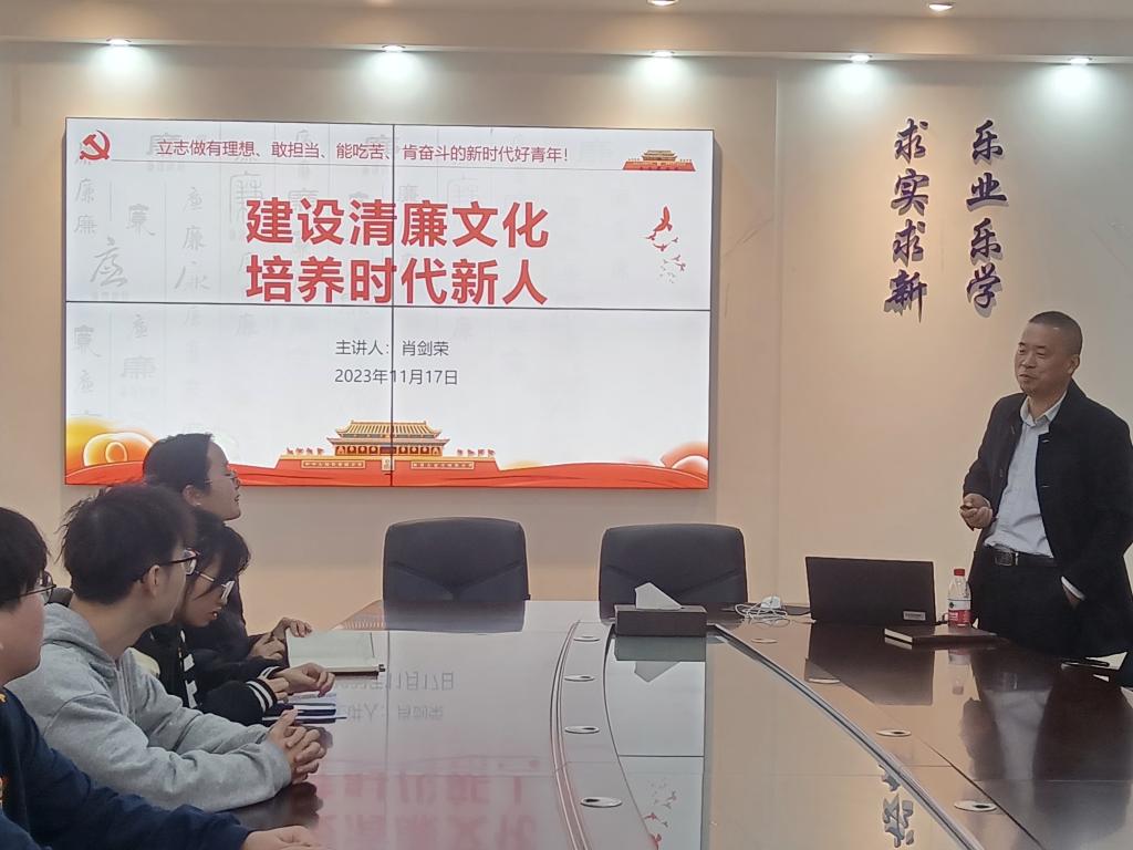 为进一步深刻领会党的二十大精神,加强学生党员的廉洁自律意识,引导学生党员进一步增强纪律意识和规矩意识,我院本科生第二党支部于11月17日在雁山校区08201会议室开展“建设清廉文化,培养时代新人”廉政专题党课,学院院长肖剑荣主讲,本科生第二党支部全体党员参加会议。