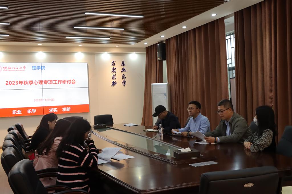 为了进一步推动学院心理工作的深入开展,提高学院整体教学质量,11月10日下午,理学院在雁山校区08201会议室召开2023年秋季学期心理专项工作研讨会。学院党委书记欧阳胜权、党委副书记钟立军、全体辅导员参加会议,会议由学院党委书记欧阳胜权主持。