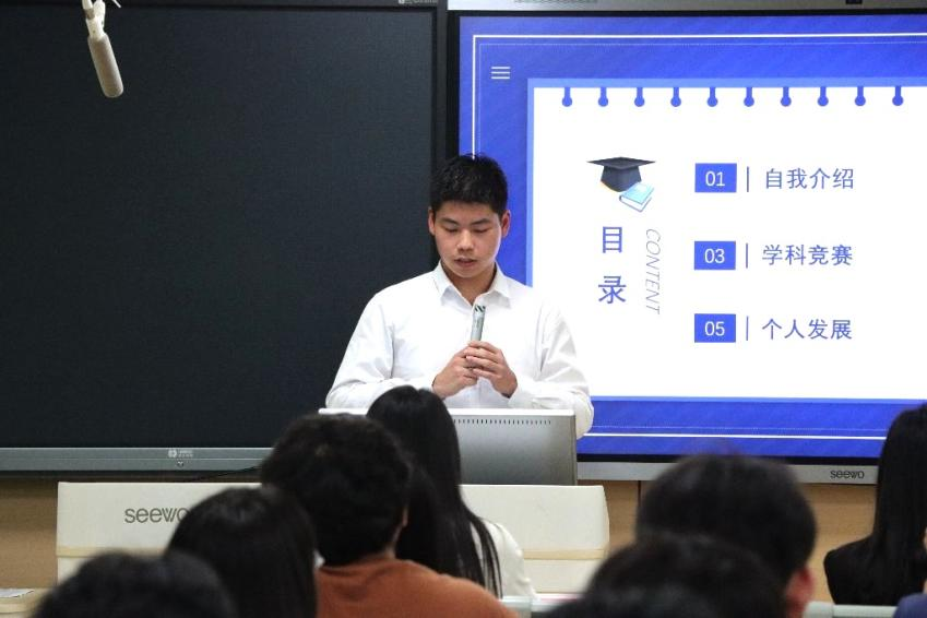 两位国奖生分享经验后,同学们积极参与互动环节,主动向他们提问,寻求学业等方面的指导。两位国奖生也耐心细致地为提问的同学提供了针对性的建议和解决方案。