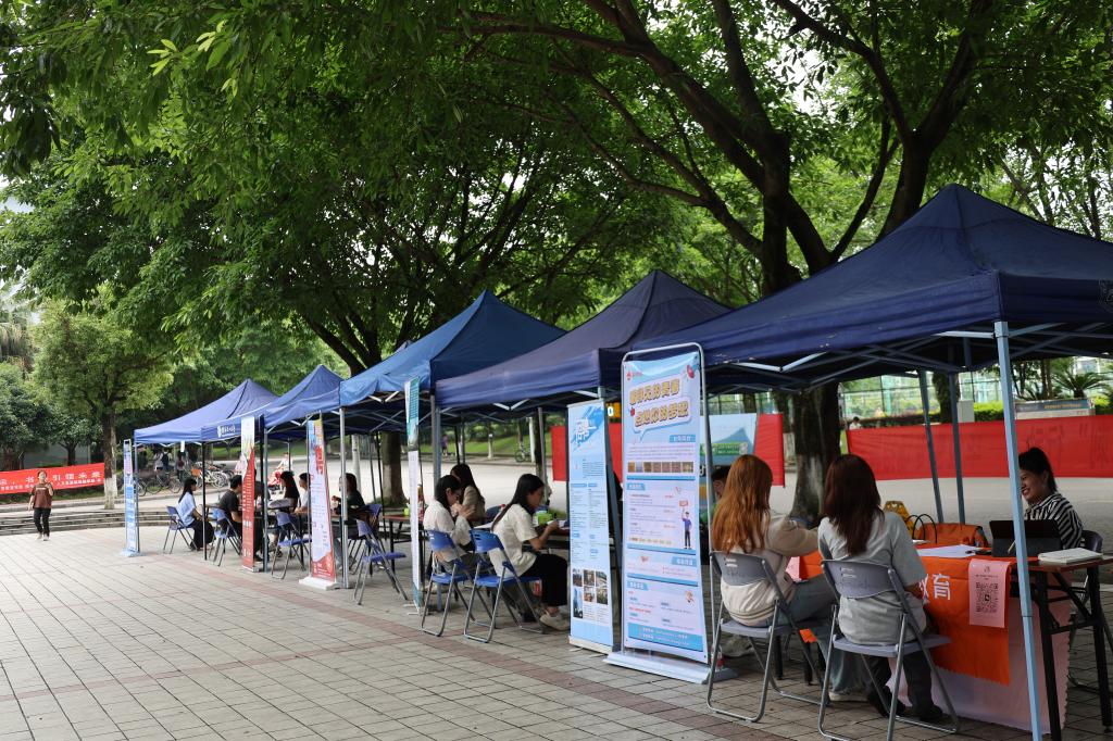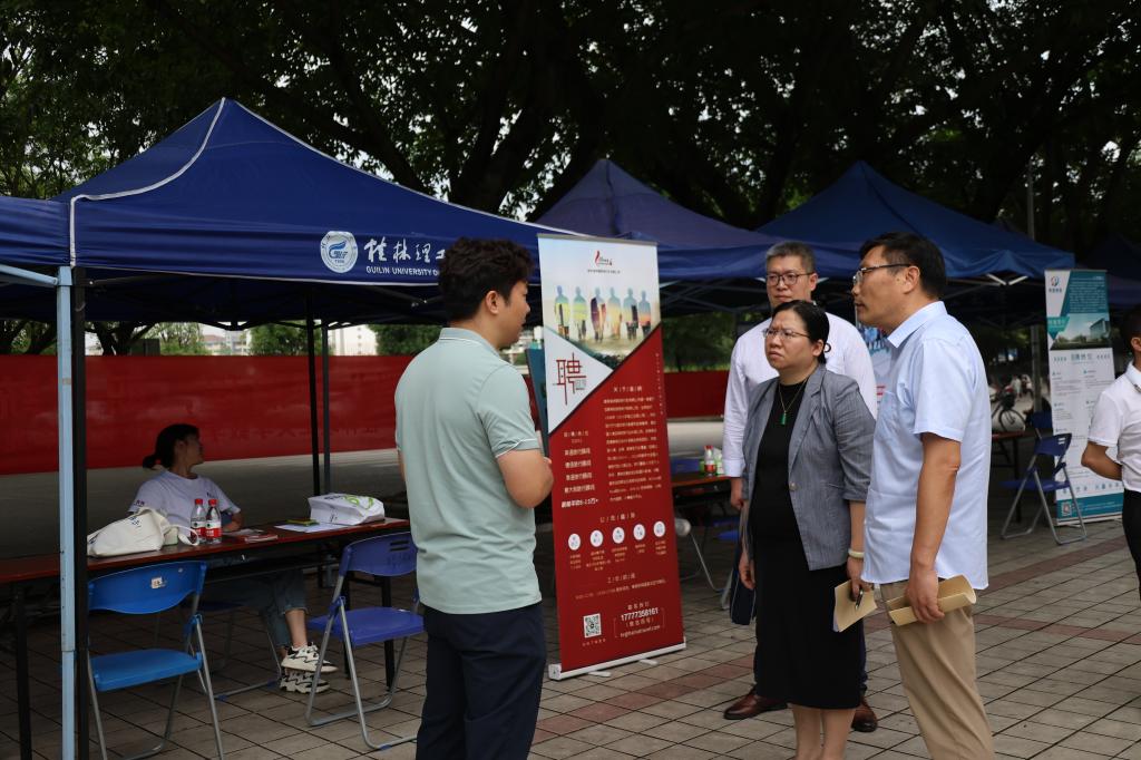 5月17日上午,beat365手机版官网入口和外国语学院携手合作,在雁山校区三号食堂广场共同举办2024年春季学期毕业生“百日冲刺”就业专场招聘会。学校学生工作部(处)副部(处)长、大学生就业与职业规划指导中心主任迟国东,beat365手机版官网入口党委书记江玲、党委副书记钟立军、副院长唐国强、副院长封全喜,外国语学院党委书记谢济光、党委副书记邓洁琼、副院长李蓉到场指导,各学院毕业生辅导员及2024届毕业生通过线上和线下方式共计500余人参加。