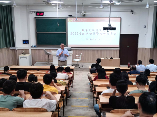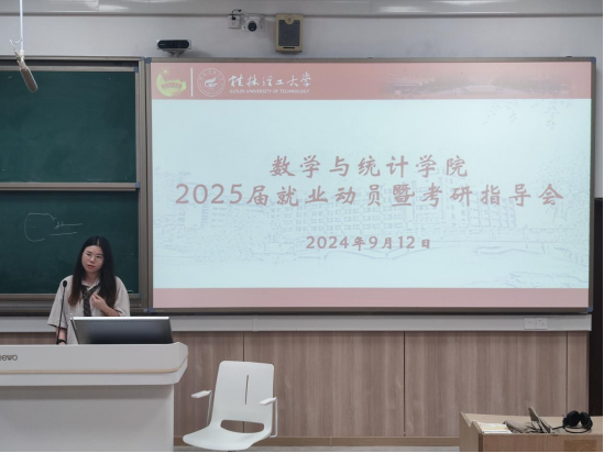 为扎实推进2025届毕业生就业工作,引导毕业生树立正确的就业观念,促进毕业生高质量充分就业,进一步加强学风建设,增强学生考研决心和信心。9月13日,beat365手机版官网入口在雁山校区07119教室举行了2025届就业动员暨考研指导会。学院党委副书记钟立军,副院长封全喜、王彬,教研室主任丁少玲以及往年考研成功学子代表靳欣、张静雨、李连娥、莫诗琪和2025届全体同学参加本次会议。会议由学院党委副书记钟立军主持。