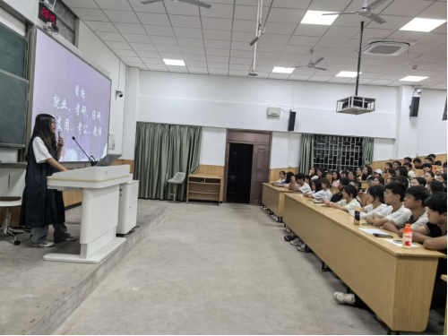 宣讲会上,张子诺同学首先向新生们详细介绍了当前的就业形势与政策背景,通过生动的实例与详实的数据,使新生们对就业市场有了更为直观且深刻的认知。随后,她将话题聚焦于职业规划指导,结合自身求学经历,深入阐述了根据个人兴趣、特长及市场需求制定职业规划的重要性。同时,她积极鼓励新生们勇于探索未知领域,持续拓宽自身视野与能力,为未来职业发展筑牢坚实基础。