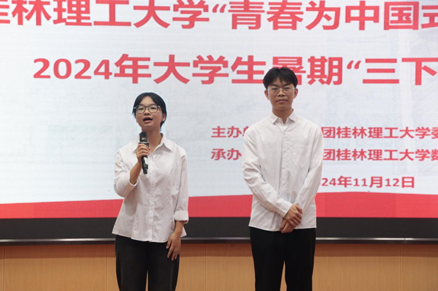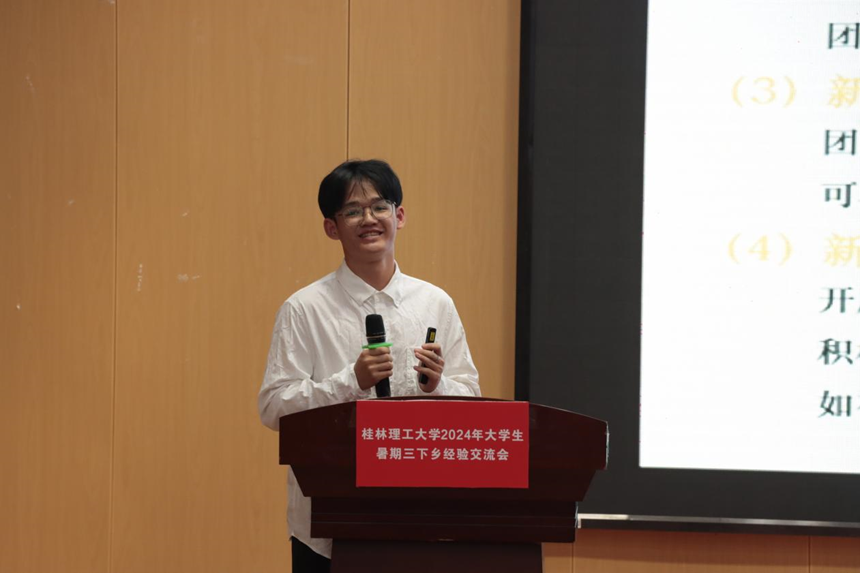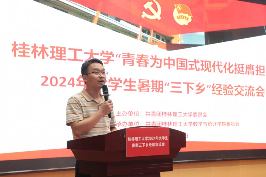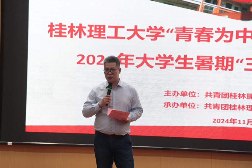 11月12日,桂林理工大学在雁山校区图书馆报告厅成功举办了以“青春为中国式现代化挺膺担当”为主题的2024年大学生暑期“三下乡”社会实践经验交流会。此次活动旨在通过分享今年优秀项目的经验,激发同学们对2025年“三下乡”活动的热情与了解,进一步推动大学生深入基层、服务社会。创新创业学院专职副院长唐红兵,beat365手机版官网入口党委副书记钟立军,校团委科技实践部副部长卢桂盛,以及二级学院团委书记、副书记代表出席本次活动。