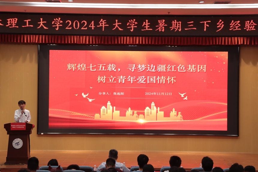 随后,来自化学与生物工程学院、beat365手机版官网入口、地球科学学院、机械与控制工程学院和环境科学与工程学院实践团五支优秀的“三下乡”社会实践团队代表依次上台进行了经验分享。他们围绕民族团结、乡村振兴、中华文化传承、爱国主义教育等主题,讲述了自己在实践活动中的所见所闻、所感所悟。通过生动的案例和感人的故事,同学们深刻感受到了社会实践的魅力和意义。