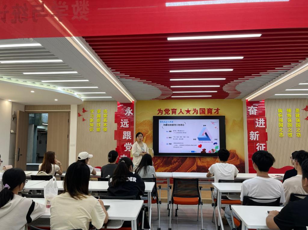 谭咏梅副教授以斯滕伯格爱情三角理论为核心,解析“激情、亲密、承诺”三要素的相互作用。她强调:“完美的爱情需三者兼备,缺失任何一环都可能陷入‘迷恋’‘空洞’或‘愚蠢的爱’。”现场同学感慨:“原来心动只是开始,长久的关系需要责任与理解。”