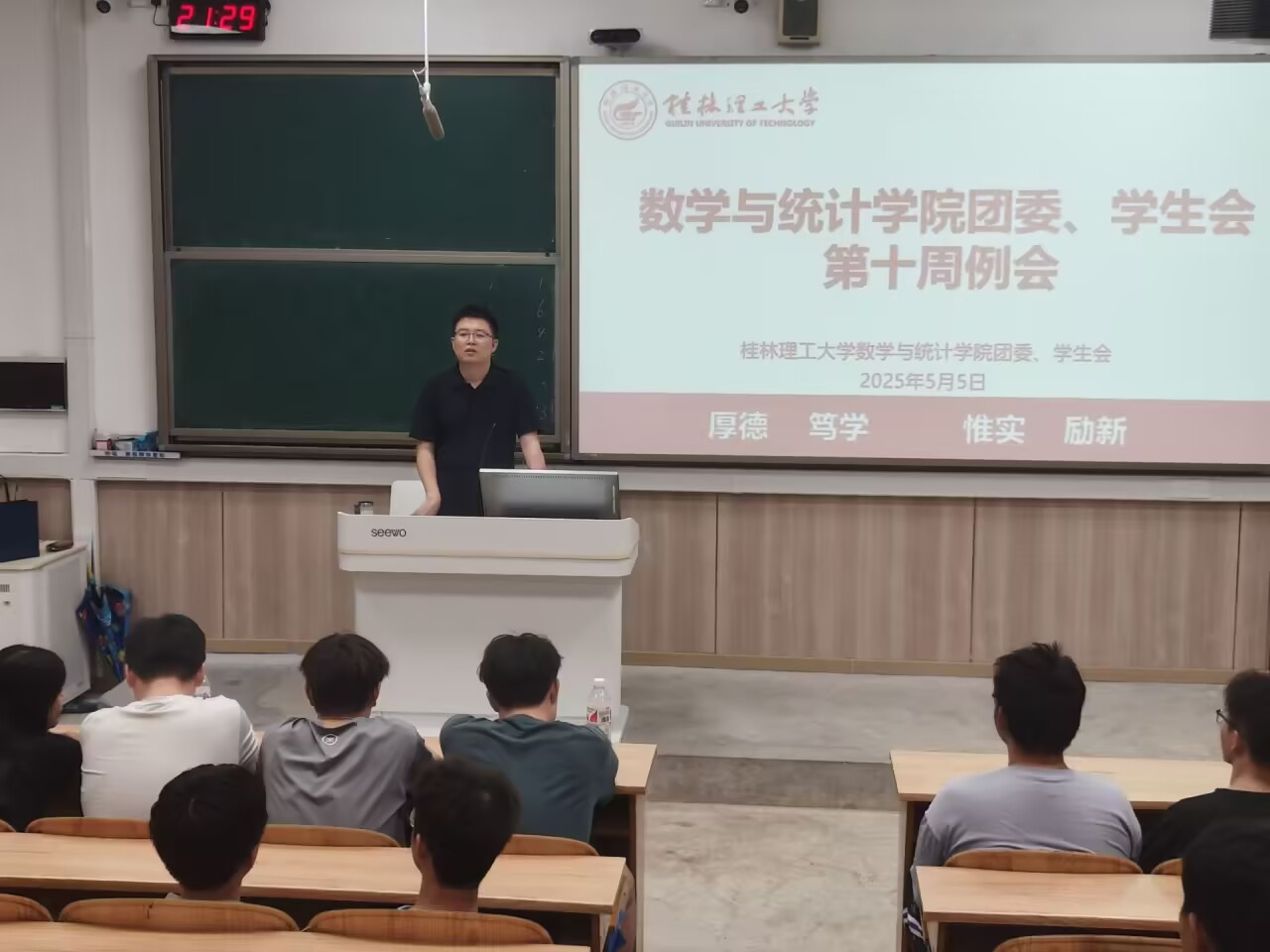 为了更好地促进各部门之间的配合,提高团委、学生会及学生社团成员的工作积极性和工作效率,我院于2025年5月5日晚在雁山校区07119教室开展了第十周例会,学院团委书记李艮,团委、学生会及学生社团全体成员参加。