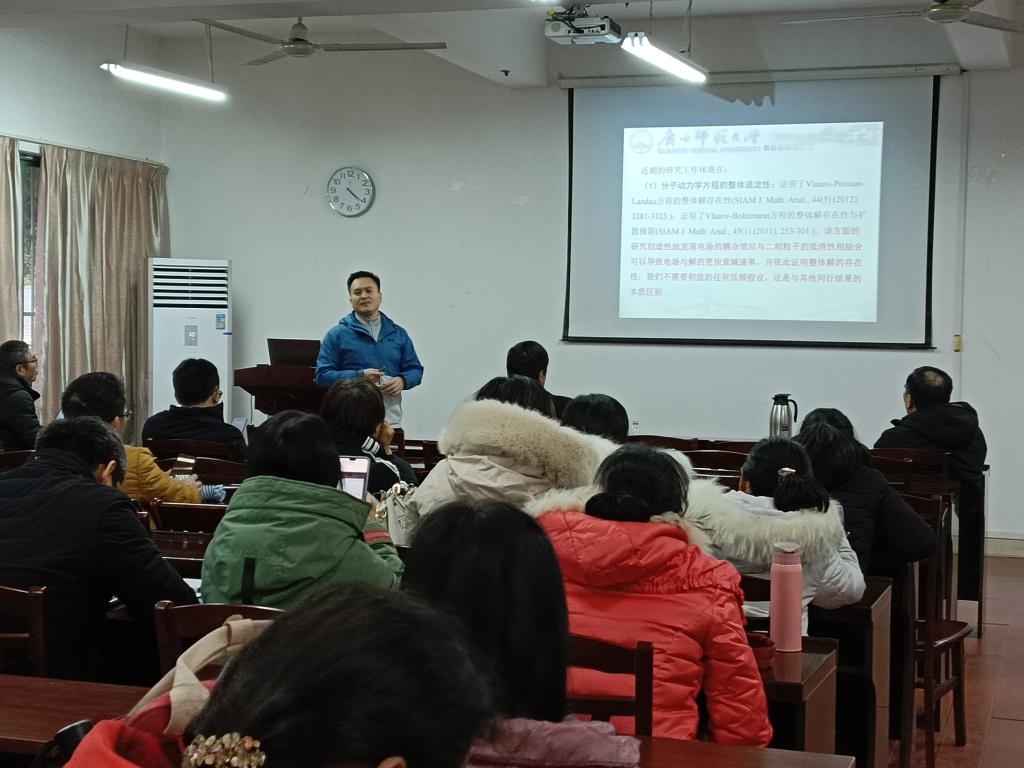 2023年12月18日,广西师范大学beat365手机版官网入口张映辉院长应邀到我院作“基金申报的一些体会”报告,beat365手机版官网入口全体教职工现场聆听了报告,受益匪浅。