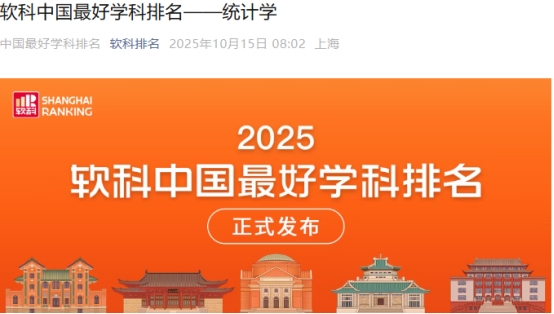 10月15日,权威高等教育评价机构软科正式发布“2025软科中国最好学科排名”,beat365手机版官网入口统计学专业荣登2025软科中国最好学科排名。