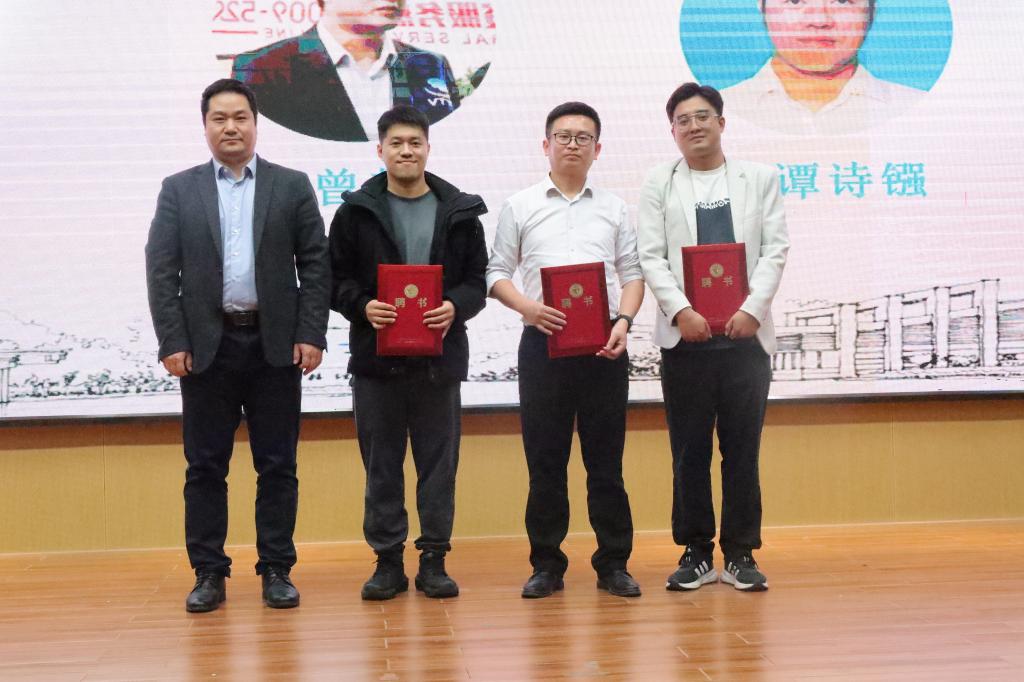 蒋远营院长为谢万富、曾哲两位校友和谭诗镪先生颁发“校外职业发展导师”