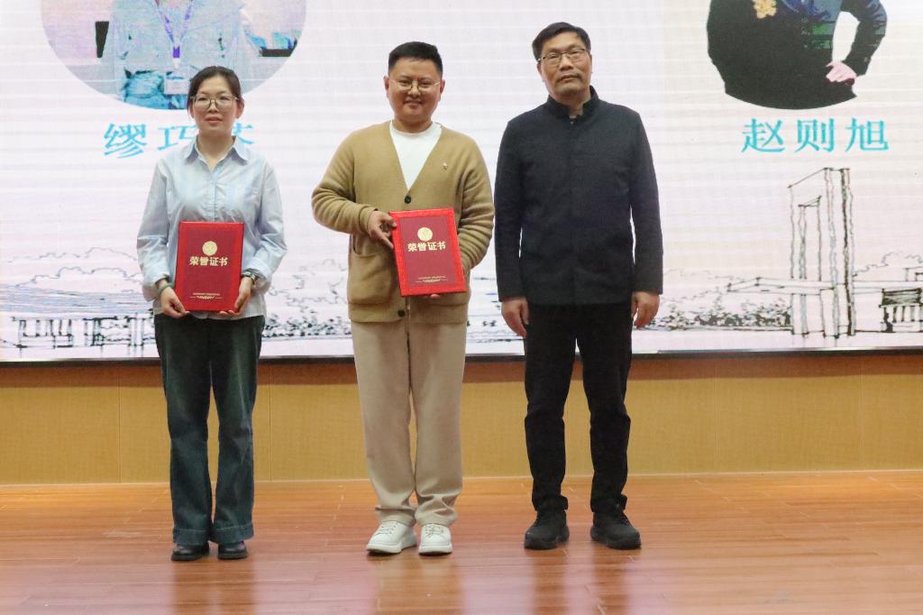 唐国强副院长赵则旭、缪巧芬两位校友颁发“优秀校友”证书