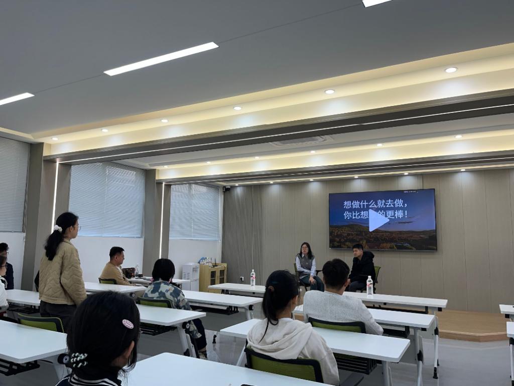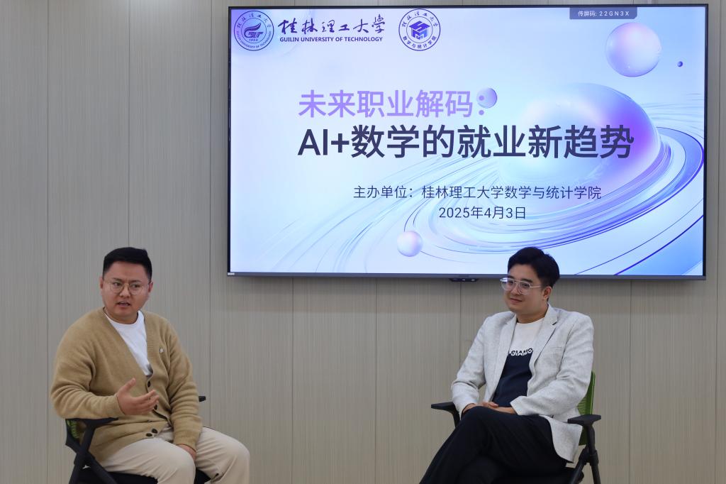 当天上午10:30,由科大讯飞股份有限公司大数据与算法工程师谭诗镪、杭州中房信息科技有限公司大数据和产城发展研究院中级研究员缪巧芬围绕“未来职业解码:AI + 数学的就业新趋势”这一主题,于一站式学生社区10B考研规划指导中心,结合行业实践,分析了AI+数学就业的多元融合点,给同学们做了一场精彩报告。在自由交流环节中,曾哲、赵旭则2位校友,围绕“从课堂到职场的能力跃迁”与同学们分享了转型经验。